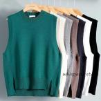 ベスト ジレ フロントボタンラウンドネックニットベスト レディース