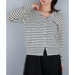 カーディガン バイカラーラインラウンドネックニットカーディガン レディース