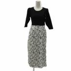 未使用品 トランテアン ソン ドゥ モード ワンピース 36 S 黒 白 リブニット ラウンドネック 七分袖 無地 花柄 プリーツ ロング丈