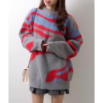 ニット セーター 配色 ラウンドネック オーバーサイズ シャギー ニットトップス レディース