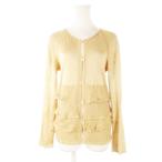 ロエベ LOEWE カーディガン ニット ラウンドネック 長袖 切替 ティアード 光沢感 M ベージュ /CK14 ■GY11 レディース