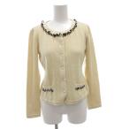 ルネ Rene カーディガン ニット ウール 36 アイボリー 長袖 ラウンドネック ビジュー装飾 /FF ■GY62 レディース