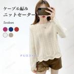 ニット セーター 「洗える」ケーブルデザイン ラウンドヘムニット レディース