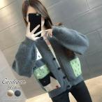 ニットカーディガン 秋冬 レディース ショート丈 アシンメトリー 切り替え トップス カジュアル 羽織り 個性的 韓国 ファッション おしゃれ
