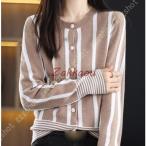 洗えるカシミアタッチニットカーディガン ウォッシャブル 洗濯機 クルーネック 長袖 黒 ストライプ M L トップス カーディガン レディース 春 オフィス 事務服