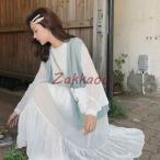 【\クーポン利用で20%OFF!/】 ワンピース レディース ラウンドネックフリルワンピース 20代 安い アウトドア かわいい 韓国 前開き ロング 40代 ルームウェア しっかり 50代 人気 Aライン ニット 薄手 カジュアル トップス スカート おしゃれ 半袖 春 大人 パジャマ