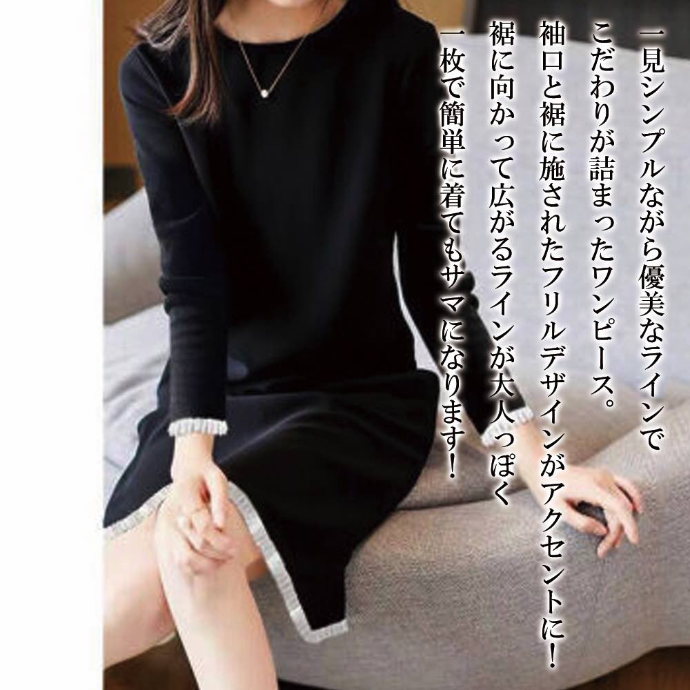 ニットワンピース レディース 40代 膝丈ワンピース 秋冬 長袖ワンピース 無地セーター Aラインスカート ロング オシャレ結婚式ドレス ラウンドネック 着痩せ