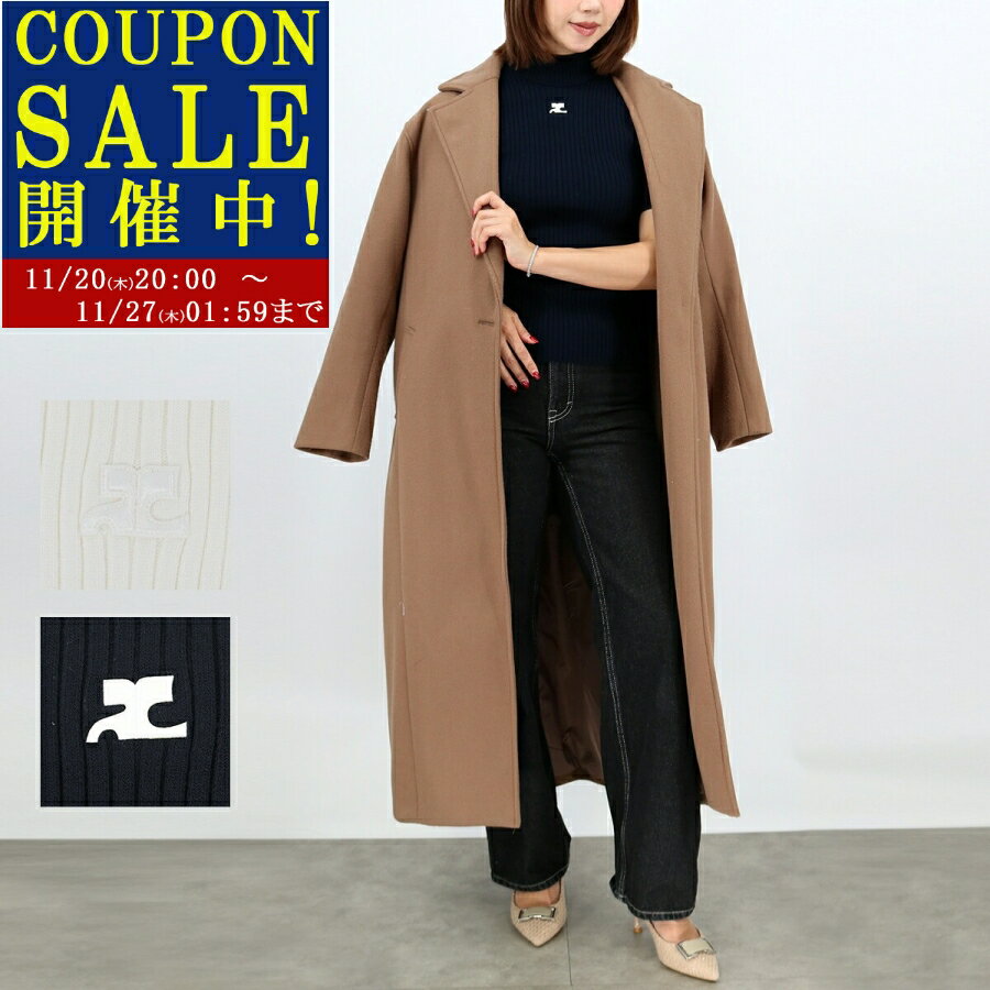 COURREGES クレージュ リブニットモックネックセーター REEDITION RIB KNIT MOCKNECK SWEATER ロゴ PERMPU022FI 9999 BLACK