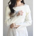 ニット セーター ラインストーンアシメネックリブニット(薄手) レディース