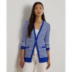 カーディガン ストライプド リブニット Vネック カーディガン レディース