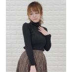 ニット セーター 「Cieluna」袖ボタンハイネックリブニットプルオーバー レディース