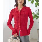カーディガン 「手洗い可能」ランダム リブ ポロ ニット カーディガン レディース