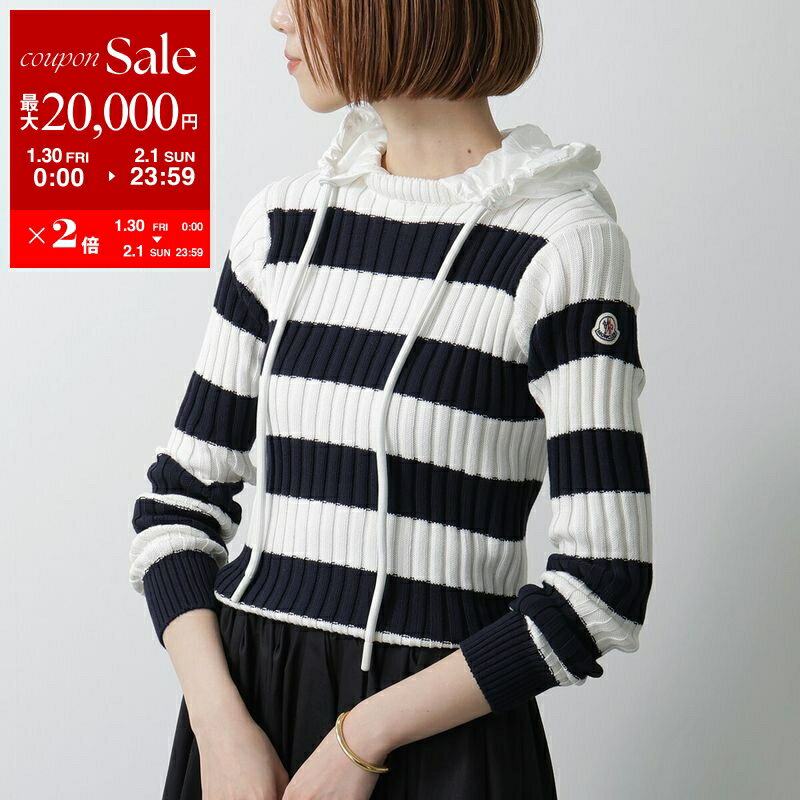 MONCLER モンクレール セーター 9G00004 M1509 レディース コットンニット ボーダー フード付き リブ アイコンパッチ 長袖 P70