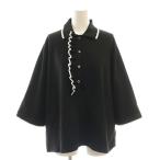 ユナイテッドアローズ UNITED ARROWS ミニマルフリル ポロニット 七分袖 F 黒 ブラック 1518-106-1887 /AT ■OS レディース