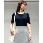 ニット セーター 「七分袖/春夏素材」メッシュ衿付きニット レディース