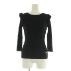 ブルーレーベルクレストブリッジ BLUE LABEL CRESTBRIDGE フリルスプリングリブニット カットソー 七分袖 38 ブラック /MY ■OS レディース