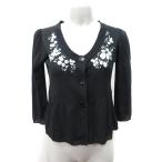 スーナウーナ Sunauna カーディガン ニット 七分袖 刺繍 38 M 黒 ブラック /YI レディース