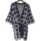 美品 Weekend Max Mara ウィークエンドマックスマーラ ウィンドウペン柄 七分袖 ベルテッド ニット カーディガン L ブラック ホワイト レディース 古着 中古
