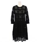 シャネル CHANEL 20SS ニットワンピース ひざ丈 七分袖 透かし編み 38 黒 P63055K48849 /KH レディース