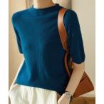ニット 半袖 ハイネック タートルネック トップス レディース 女性 婦人服 無地 単色 シンプル おしゃれ かわいい きれいめ オフィス 通勤