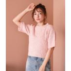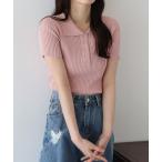 ニット セーター 半袖2WAYリブニットポロシャツ レディース