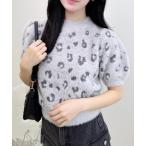 ニット セーター ヒョウ柄フェザー半袖ニット レディース