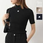 ■Courreges クレージュ PERMPU026FI0001 レディース リブ半袖ニット REEDITION KNIT SS JUMPER ロゴ刺繍 ハイネック セーター ブランド