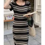 半袖サマーニットセーター ボーダーシャツニット ラウンドネックニット 半袖ニット 春夏ニット 大人ファッション 大人コーデ 大人カジュアル 大人韓国コーデ アラサーファッション アラサーコーデ ママコーデ 綺麗めコーデ シンプルコーデ ins 綺麗ニット