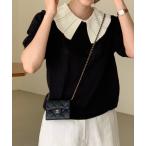 ニット セーター 配色襟サマーニット半袖トップス レディース
