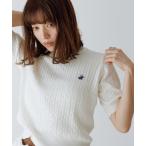 ニット セーター ロゴ刺繍半袖リブニットポロ レディース