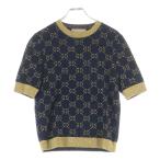 GUCCI グッチ GGコットンラメ ファブリック 半袖ニットセーター ネイビー/ゴールド 526759 レディース