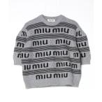 「miu miu」 ボーダー柄半袖ニット 38 グレー レディース