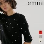 ニット セーター 半袖ロゴジャカードビジューニット レディース