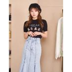 ニット セーター エンブレム刺繍 フレンチメイドメッシュニット半袖Tシャツ レディース
