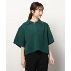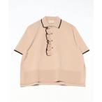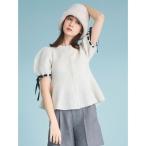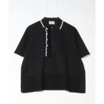 ポロシャツ ポロ レース調 リボン付き ポインテルニット 半袖ポロシャツ レディース