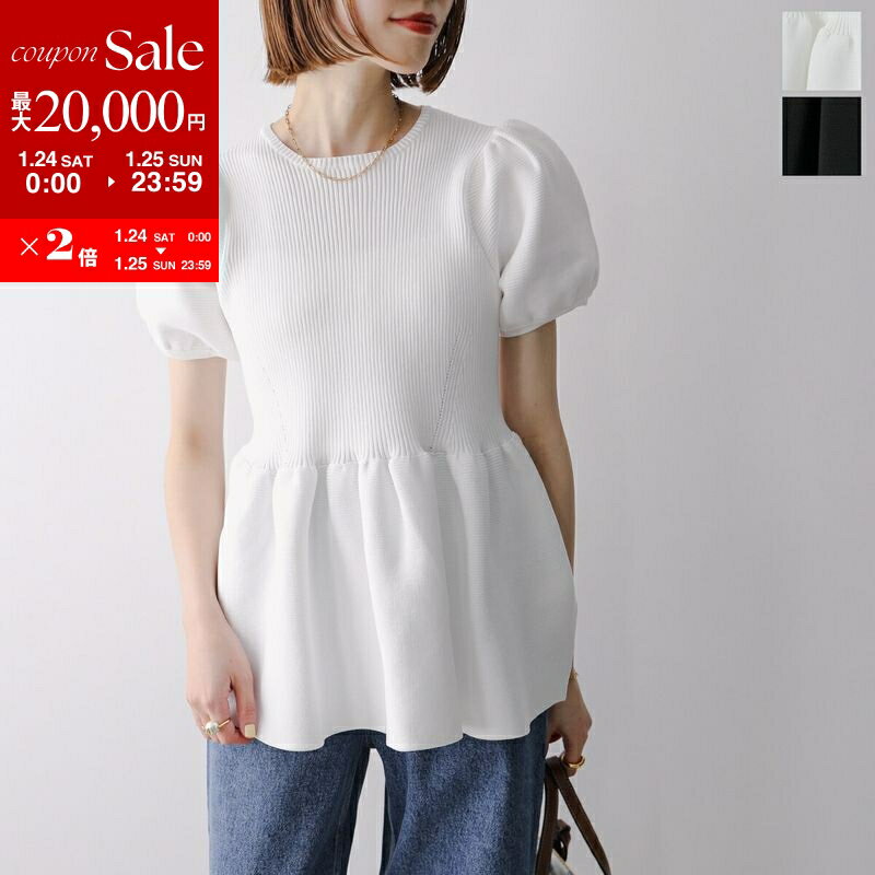 PICCIN ピッチン ニット 906500 レディース パフスリーブ ペプラム 半袖 リブ 切替 クルーネック カラー2色【po_sannn】