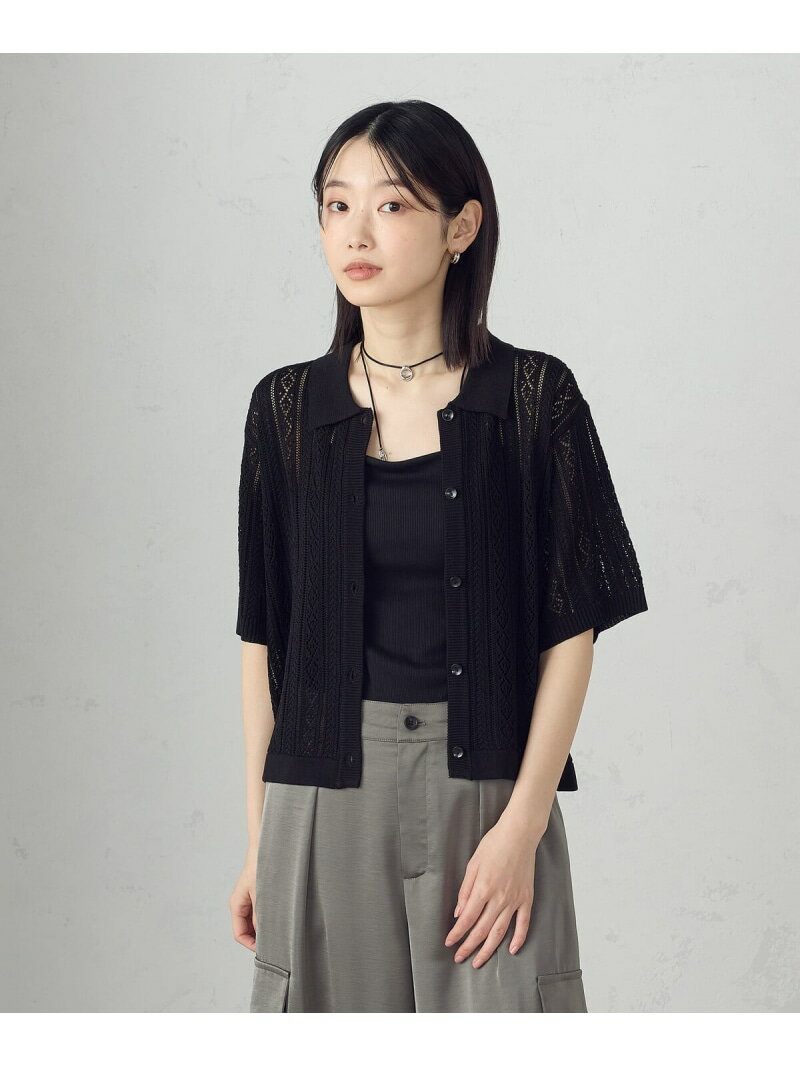 【SALE/50%OFF】LEPSIM 7ゲージ透かし柄5分袖 レプシィム トップス ニット ホワイト ブラック