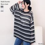 シアーニット レディース 長袖 ボーダー柄 薄手 重ね着 春 夏 秋 長袖 トップス カットソー 大きいサイズ ゆったり 透け感 おしゃれ ニット ロンT 韓国