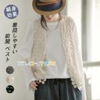 ベスト レディース 袖なし 春 夏 秋 ジレベスト ジレ レース ノースリーブ 前開き 薄手 ベスト 羽織り ショート丈 花柄 透かし編み