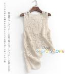 ニットベスト レディース 夏服 袖なし プルオーバー ノースリーブ 花柄 刺繍 後ろ長め 重ね着 不規則 羽織り ロング 透かし編み タンクトップ