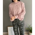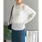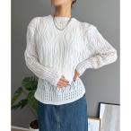 ニット セーター 透かし柄編みモヘアライクニットプルオーバー レディース