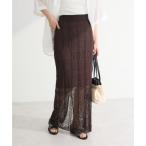 グリーン パークス Green Parks 透かし柄ニットレースIラインスカート (ブラウン)