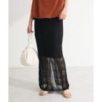 グリーン パークス Green Parks 透かし柄ニットレースIラインスカート (ブラック)