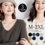 目玉セール リブニット レディース 長袖 クルーネック Vネック 秋 冬 40代 50代 30代 C2717送料無料