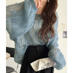 【店内全品30%OFFクーポン】10/14 23:59まで■透かし編みポロニットプルオーバー トップス レディース ニット カーディガン 襟 ボタン 羽織り 長袖 シアー 透かし編み カジュアル シンプル