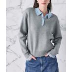 ニット セーター 配色 レイヤードポロニット/襟付きニット/ポロ襟/ハイゲージニット レディース