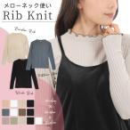 メローネック使いリブニット 長袖 ハイネック フリル 重ね着 インナー レディース リブ編み くすみ色 春 秋 冬 人気