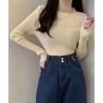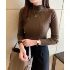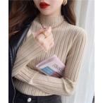 ニット セーター ハーフタートルネック リブニット 長袖 レディース