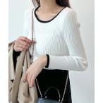 ニット セーター リンキング配色スウェットライクニットプルオーバー(自宅で洗えるウォッシャブル素材) レディース
