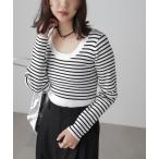 ニット セーター 二点セット ショート丈ダメージニット+インナー レディース